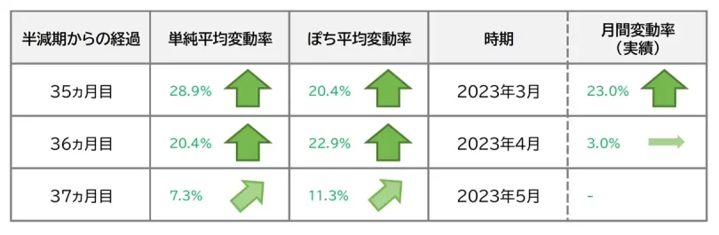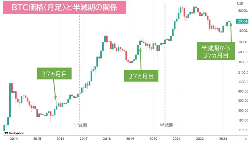 2023年5月は直近の半減期から37ヵ月目にあたります。